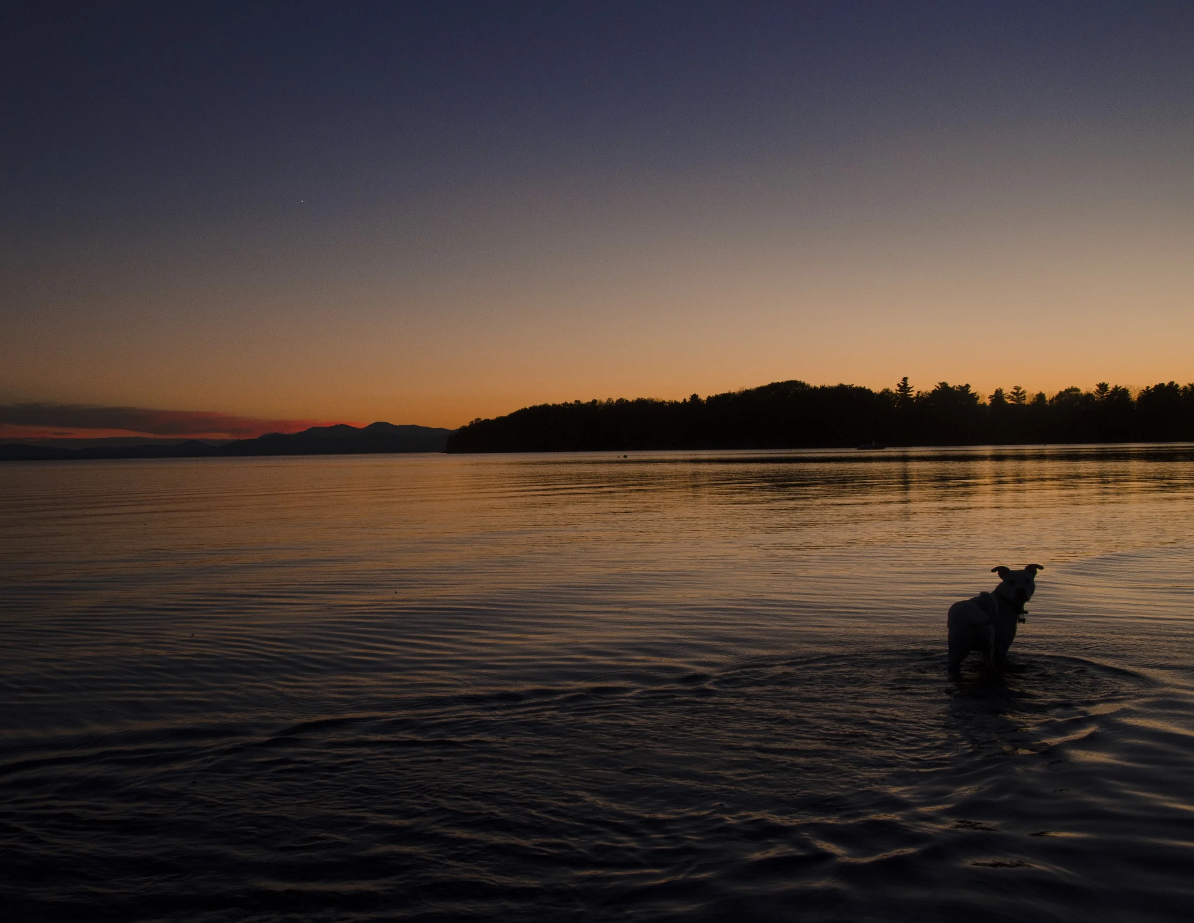 Augie looked back at me as I photographed him enjoying the lake at sunset.